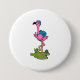 Flamingo as Hiker with Backpack 7.5 Cm Round Badge