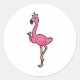 Flamingo as King with Crown & Staff Classic Round Sticker
