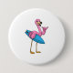 Flamingo as Surfer with Surfboard 7.5 Cm Round Badge