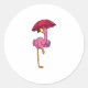 Flamingo at Raining with Umbrella Classic Round Sticker