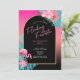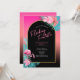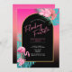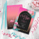 Celebrate with a "Flocking Fantastic" bachelorette party! Pink flamingos, tropical palm leaves and florals with gradient backgrounds, from hot pink to bold turquoise, are accented by arched geometric shapes in solid black. This colorful invitation uses a little "colorful" language as a unique way to invite guests to your destination bachelorette. Search ID930 to see all the coordinating products in this collection.