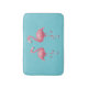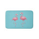This bath mat is shown in a solid colour of deep aqua with a cute tropical flamingo print.