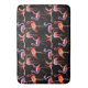 Flamingo bath mat, large with colourful birds, stars, on a black background. Thanks to Creative Fabrica for some of the elements in the design.