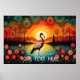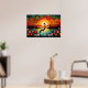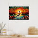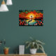 Flamingo Bird Lake Sunset Colourful Floral Poster
