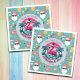 A funny Christmas in July design with a tropical beach and a Flamingo Bird with a Christmas Hat! You can personalise this with your name.