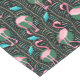 This elegant flamingo bird pattern decorative table runner design is made in a retro 20s Art Deco style. The bright pink flamingos rest against a background that includes fern fronds in bold colours and geometric rectangular shapes in shades of teal green / turquoise blue, all on a backdrop of black. This original, stylised design is perfect for anyone who loves these tropical animals and is looking for an elegant pattern with a retro 1920s twist.