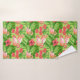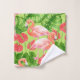 Pattern made of painted with watercolor monstera leaves, hibiscus flowers,flamingo flowers and birds