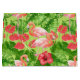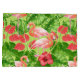 Pattern made of painted with watercolor monstera leaves, hibiscus flowers,flamingo flowers and birds