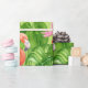 Pattern made of painted with watercolor monstera leaves, hibiscus flowers,flamingo flowers and birds