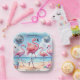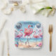 Celebrate in style with our fun and vibrant 'Flamingo Birthday Beach Party' paper plates! Featuring five dancing pink flamingos on a sunny beach, this square design is perfect for any beach-themed birthday bash. With silver disco balls, music notes, and hibiscus flowers, this design sets the perfect tone for a lively and memorable party. Customisable name and detailed event templates. Ideal for both kids and adults, this unique design is sure to get everyone excited for the big day!
