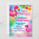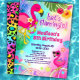 Customise your own flamingo theme pool party birthday invitations for girls.