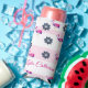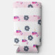Flamingo & blue flower pattern white pink stripes seltzer can cooler