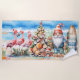 Flamingo Christmas in July with Santa Claus Beach Towel