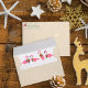 Tropical Christmas envelopes decorated with pink flamingos. Tan sand colour paper has twinkling stars background. Add a return address on the front using the text template. Inside, under the flap four big flamingos stand with holiday wreaths around their necks.