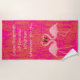 Flamingo Dance Beach Towel. Enjoy the stylish pair of lovely birds on a hot pink and coral background. Nautical, tropical, coastal style! Great for the pool, beach, or boating. Keep the quote "Leave footprints of love and kindness wherever you go..." or add your own touch to customise.