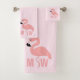 Flamingo Design Monogrammed Pink Bath Towel Set