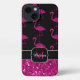 Flamingo faux sparkles pattern black Monogram iPhone Case