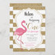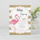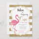 Flamingo First Birthday Invitation. Girl Birthday Party Invitation. Black, Hot Pink and Gold Glitter. Flamingo theme party bday invite. Gold Glitter and White Stripes. Printable Digital. For further customisation, please click the "Customise it" button and use our design tool to modify this template.