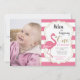 Flamingo First Birthday Invitation with custom photo. Girl Birthday Party Invitation. Black, Pink and Gold Glitter. Flamingo theme party bday invite. Pink and White Stripes. Printable Digital. For further customisation, please click the "Customise it" button and use our design tool to modify this template.