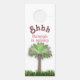 A flamingo alerts people that your baby is asleep. The reverse has the same image but with a palm tree instead.