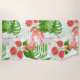 Watercolor pattern design with flamingo flowers and birds, monstera and palm leaves.