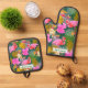 Flamingo Garden Dark Green Oven Mitt & Pot Holder Set
