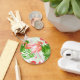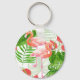Watercolor pattern design with flamingo flowers and birds, monstera and palm leaves.