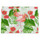 Watercolor pattern design with flamingo flowers and birds, monstera and palm leaves.