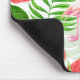 Watercolor pattern design with flamingo flowers and birds, monstera and palm leaves.