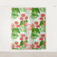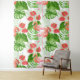 Watercolor pattern design with flamingo flowers and birds, monstera and palm leaves.