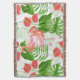 Watercolor pattern design with flamingo flowers and birds, monstera and palm leaves.