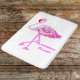 Mosaic, graphic drawing, of a Tropical, Flamingo bird, is displayed in exotic, Abstract patterns-in colours of, bright-pink, violet, fuschia, dark-brown, and black, against dark-grey, background.