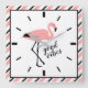 Flamingo Good Vibes Pink Black Square Wall Clock