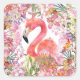 Flamingo in Flower Jungle - Summer Pattern Square Sticker
