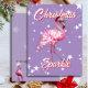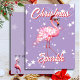 At the centre of the design is a stylish flamingo, ready for a tropical holiday, sporting a classic Santa hat and a cool pair of sunglasses. The flamingo's feathers are beautifully illustrated to look like colourful Christmas lights, adding an extra touch of seasonal cheer.