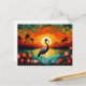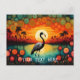 Flamingo Lake Sunset Palm Tree Colourful Floral Postcard