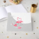 A pair of pink flamingos with necks curved to form a heart shape stand in the sea on a moonlit beach. A stylish, romantic design with a retro touch created in a pink, grey and white colour scheme with a colour-change background. A customisable design for you to personalise with your own text, images and ideas. An original digital art image.
