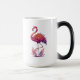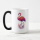 Watch the magic happen as you fill the mug with a hot beverage! The rich gradients and shading bring the flamingo to life, transforming its deep pinks and purples into a visually striking masterpiece. Perched gracefully on one leg, the flamingo boasts lush, feather-like textures that create an enchanting atmosphere.