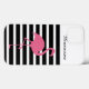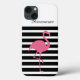 Monogram smartphonfun design in a trendy design that includes a pretty tropical pink flamingo, black and white stripes pattern, and monogram space for your name drop or monogram name initials so you carry your cellphone in style.