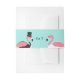 A flamingo wedding belly band featuring a flamingo bride and flamingo groom on a turquoise background. Simply add your initials, add this belly band to your cart, and enjoy your flamingo-filled wedding.
