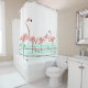 Mid-century inspired design with a retro touch featuring a group of pink flamingos standing in aqua water against a white background. A customisable design for you to personalise with your own text, images and ideas. An original digital art image created by Jess Perry at QuirkyChic Retro.
