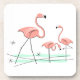 Mid-century inspired design with a retro touch featuring a group of pink flamingos standing in aqua water against a white background. A customisable design for you to personalise with your own text, images and ideas. An original digital art image created by Jess Perry at QuirkyChic Retro.