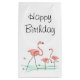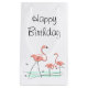 Mid-century inspired design with a retro touch featuring a group of pink flamingos standing in aqua water against a white background. A customisable design for you to personalise with your own text, images and ideas. An original digital art image created by Jess Perry at QuirkyChic Retro.