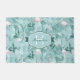This door mat features a gorgeous pattern of flamingos surrounded by abundant tropical foliage and orchids in soft blush pink and teal. A label has been provided to hold your name and monogram or other text. Search ID868 to see other products with this cheerful, summery pattern.