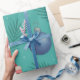 A playful tropical Christmas design featuring elegant pink flamingos in Santa hats surrounded by shimmering purple and blue ornaments, palm fronds, and festive star accents. The teal background gives a fresh coastal vibe, making this pattern perfect for wrapping paper, holiday textiles, or cheerful seasonal décor. It blends the whimsy of flamingos with classic Christmas sparkle for a unique, beachy holiday feel.