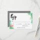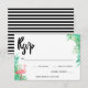 Charming RSVP in with a pink flamingo and green palm leaves. The back features thin black and white stripes.