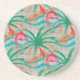 Flamingo Palm Tree Burlap Look Coaster