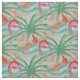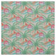 Aqua blue waves of the ocean surround the Pink Flamingo under the green Palm Trees on the sandy beach in this durable Burlap natural cloth fabric image. This tropical Palm Tree pattern is a very colourful summer print and has a chunky faux texture.