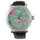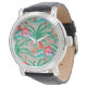 Flamingo Palm Tree Burlap Look Watch