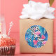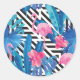 Flamingo & Palms on Geometric Pattern Classic Round Sticker